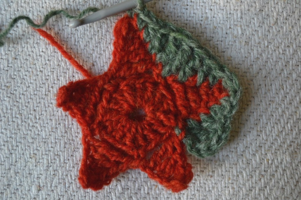 Vaihda väri viimeisen sakaran kiinnityksen yhteydessä (vihreä).