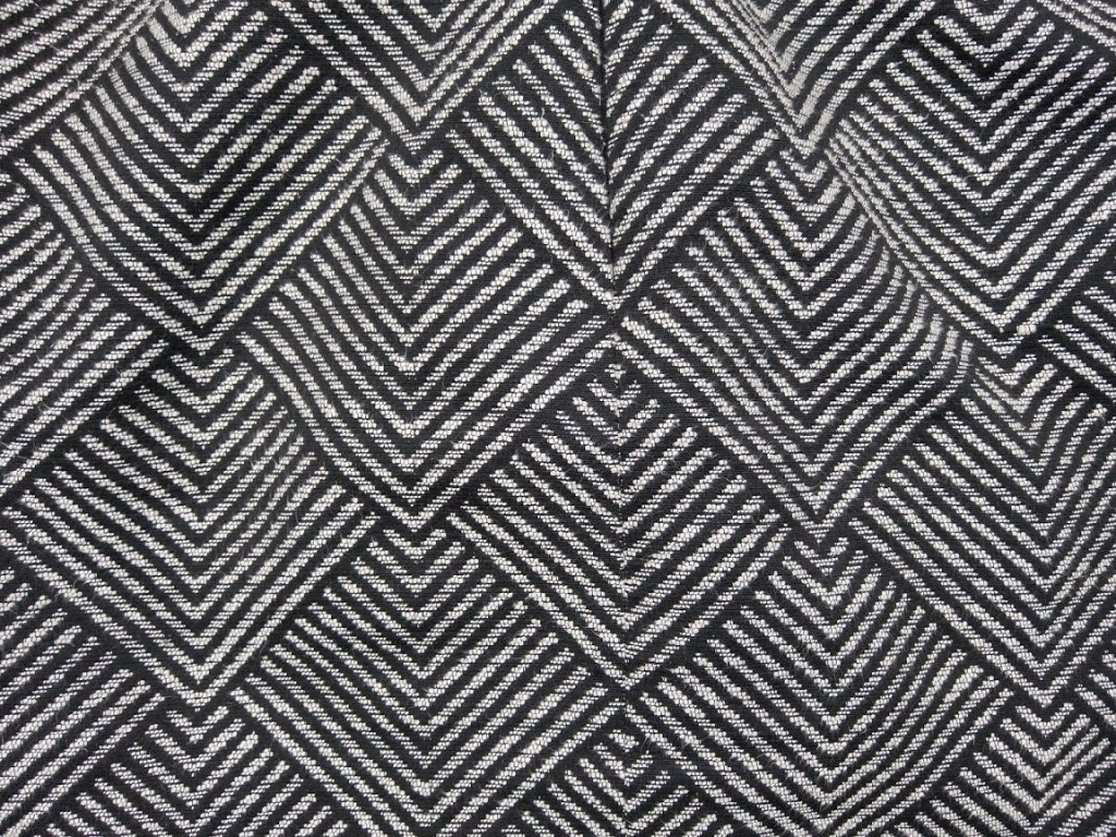 Käytin ompeluun erivärisiä helmilankoja. Kuviot määräytyivät hamekankaan sidoksen mukaan. Tein etupistoja mustiin raitoihin, aina kaksi riviä yhteen raitaan. Värejä vaihdoin vinoruutujen sisällä saman värin eri sävyihin ja vierekkäisiin vinoruutuihin käytin eri värejä.