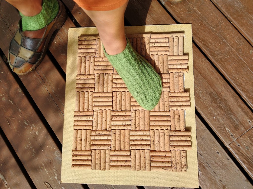 Mihin sinä käyttäisin näitä korkkeja? Korkkipinta tuntui hyvältä myös jalan alla, mutta tuskin lattiaa lopuista teen. Korkkeja on vielä hurjasti jäljellä, vaikka toinen muistitaulu on jo työnalla. Ideoita siis kaipaan!