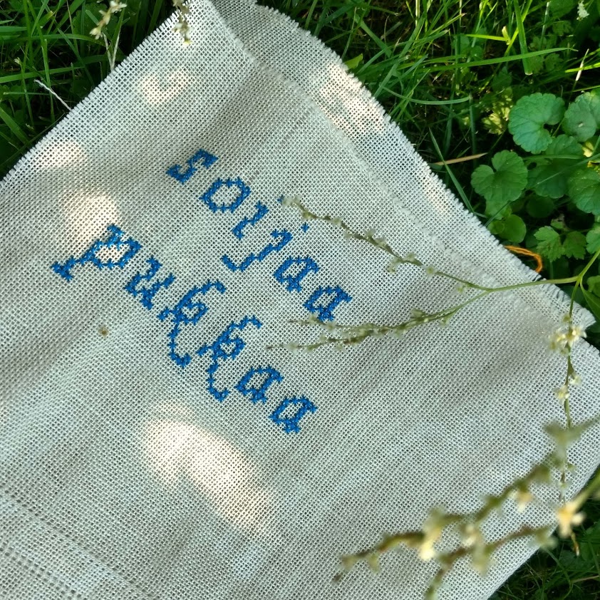 Kirjoittaminen ristipistoin on meditatiivista, jokaista kirjainta ja tekstin ajatusta ehtii pohtimaan pistojen aikana eri näkökulmista. Moni teksti tai kuva aukeaakin ehkä parhaiten just vaan pistelijälle itselleen. Fontteja kirjoittamiseen löytää googlaamalla kuvahakuja sopivilla hakusanoilla, esim. ”ristipistokirjaimia” tai cross stitch fonts”. Ja toki kirjaimia voi suunnitella myös ihan itse.