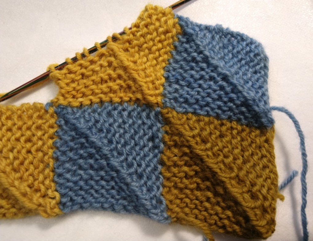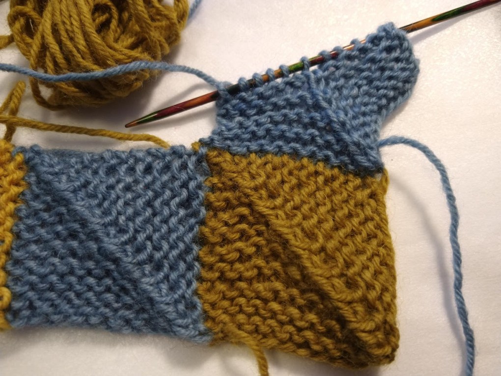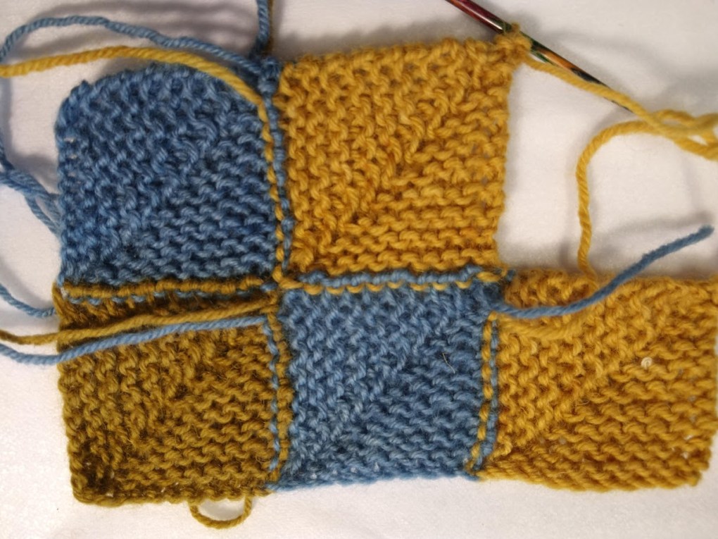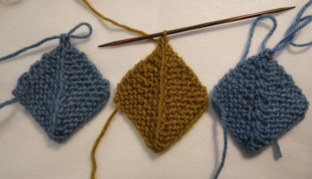 Onko sinulla ollut käytössä joku muu tapa kuin edellä kuvatut kaksi tapaa kaventaa dominoruudun silmukoita? Olen kokeillut aika monia erilaisia kavennuksia, mutta päätynyt noihin kahteen. Ja niistäkin olen käyttänyt enemmän tuota, jossa neulotaan 3 silmukkaa takareunoista oikein yhteen. En osaa sanoa miksi, sillä nyt mallitilkuissa tykästyin enemmän tuohon, jossa keskelle ruutua kulmasta kulmaan tulee selkeä silmukkarivi. Taidan tehdä tyynynpäällisen tai läppärilaukun tästä kokeilusta.