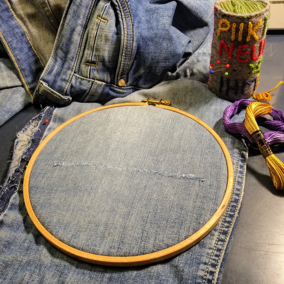 Nyt on aika aktivoitua vaatteiden korjaamisessa. Siispä kesäfarkkujen kimppuun jo ihan senkin vuoksi, että kevättä alkaa olla ilmassa ja ensi yönä siirrytään kesäaikaan. Tulee kiire, kun syksyllä saatu tunti otetaan ensi yönä pois.
