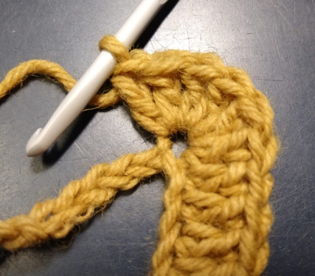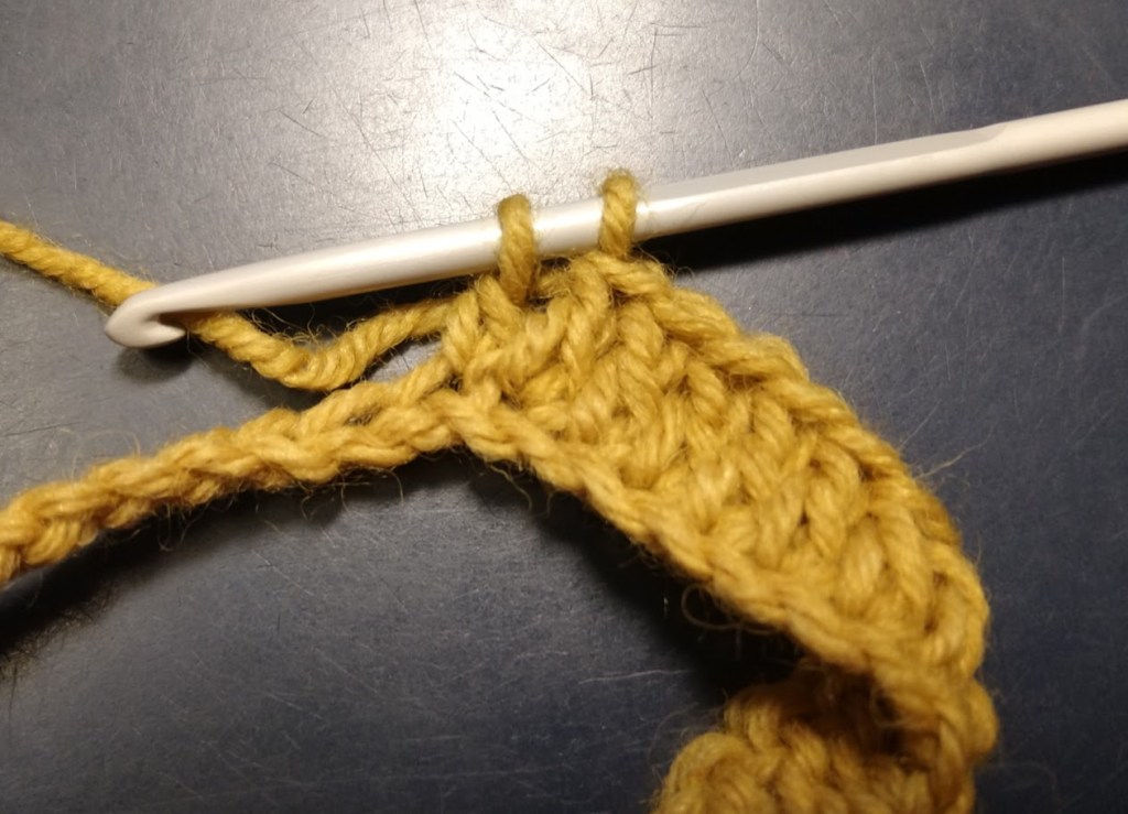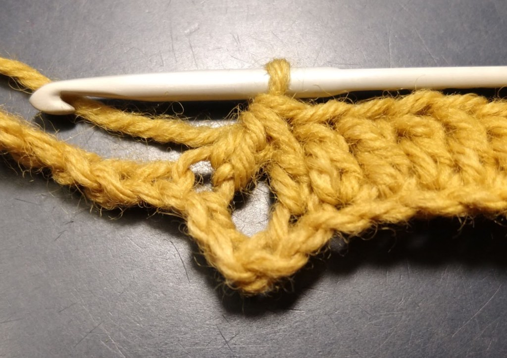 - Virkkaa 9 pylvästä ja 10. pylväs niin, että jätät viimeisen vaiheen tekemättä.