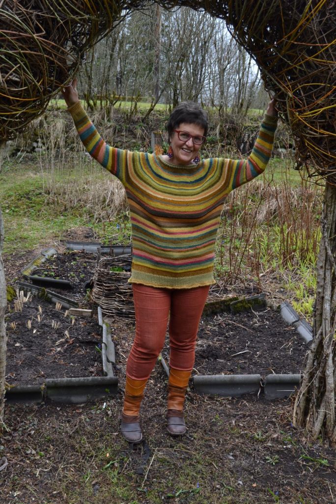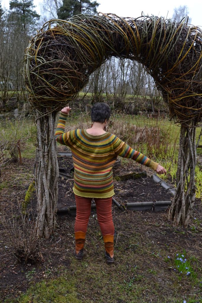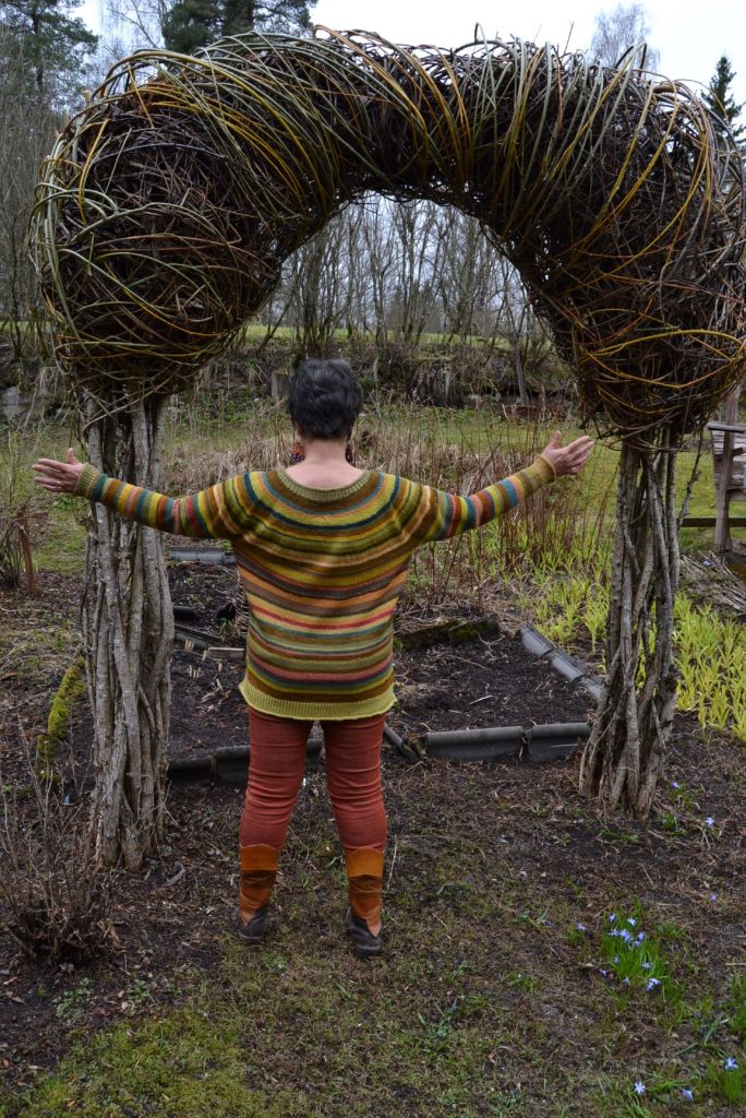 Vappu tuli ja meni, mutta Serpentiini – pusero jäi. Tämä pusero on koleassa toukokuussa mainio vaate ja eiköhän sillä ole käyttöä myös Suomen suvessa. Ehkä ihan hyvä vaate myös Juhannuksena. Kuvissa oleva Riemukaari on elävä pajutyö, joka kasvaa vuosi vuodelta, postaus toissa kesältä elävästä pajupuutarhastani.