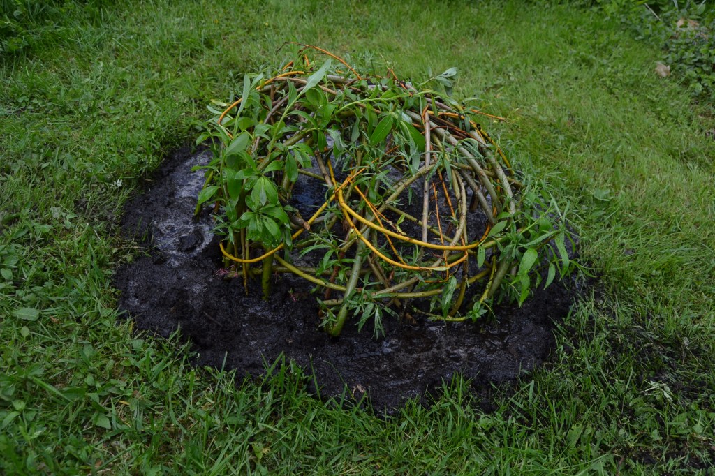 Istuttamisen jälkeen palloa on tarpeen kastella runsaasti, mielellään päivittäin. Elävä pajutyö ei kasva kovin runsaasti ensimmäisenä kesänä, sillä suurin osa voimasta menee juurtumiseen. Hyvin esijuurrutetut ja silmuja vauriotta avaavat pajut alkavat kuitenkin heti tekemään uusia pajupiiskoja. Tämän tämän vuotisen pajupallovauvan ajoitus osui joka vaiheessa nappiin ja nyt viikko istutuksen jälkeen se kasvaa vauhdilla ja on kovin terhakas.