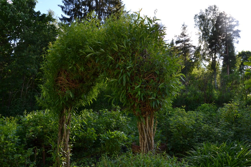 Moni on kysellyt, miten elävä pajupallo tehdään. Tässä tuoreimman, viikko sitten maahan istuttamani pajupallon syntytarina. Käytän pajutöihini vain viljeltyjä pajulajeja. Niiden vuosittainen kasvunopeus on paljon suurempi kuin luonnonpajujen. Käytössäni on mm. keltajalavaa, huurrepajua ja koripajua. Kasvatan niitä pihallani ja myös elävät pajutyöt osallistuvat uuden punontapajun tuotantoon vuosi vuodelta enenevässä määrin.