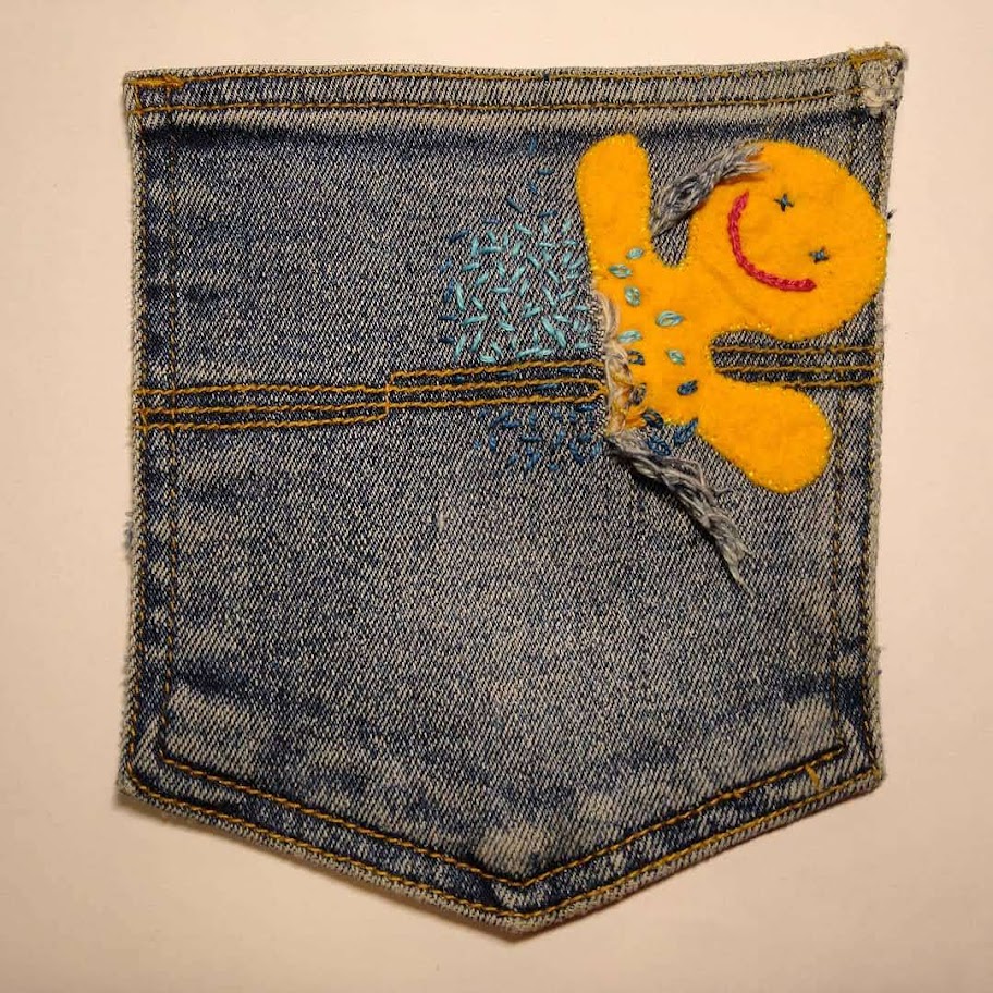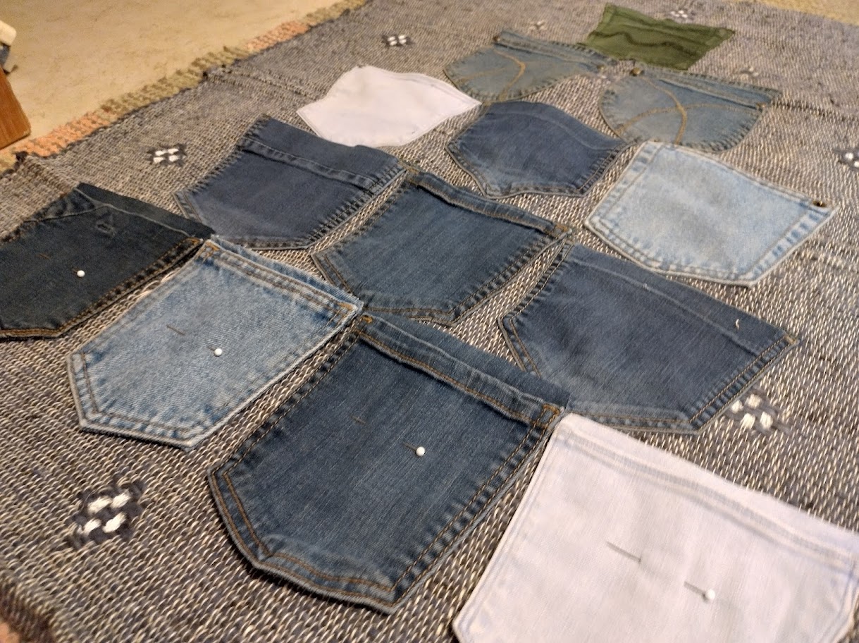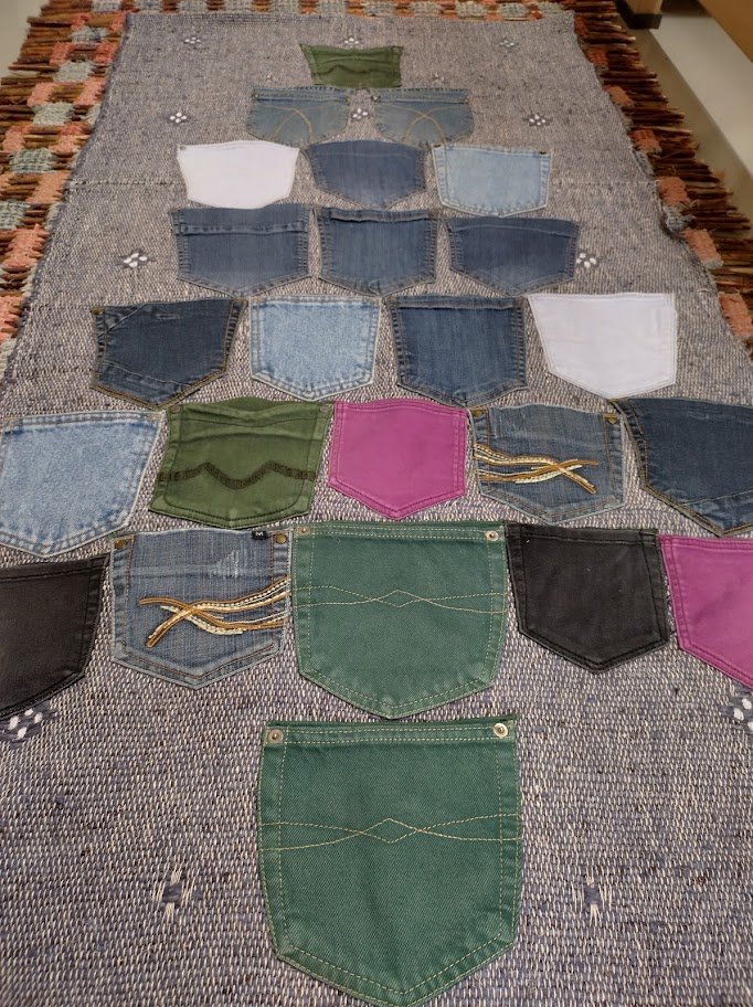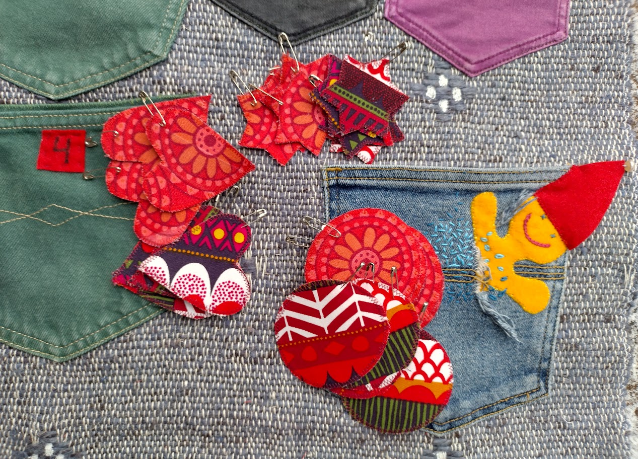 Ompelin pyynnöstä päiväkoti-ikäisille veljeksille kestojoulukalenterin. Kalenterin 24 luukkua ovat käytöstä poistettujen farkkujen takataskuja.