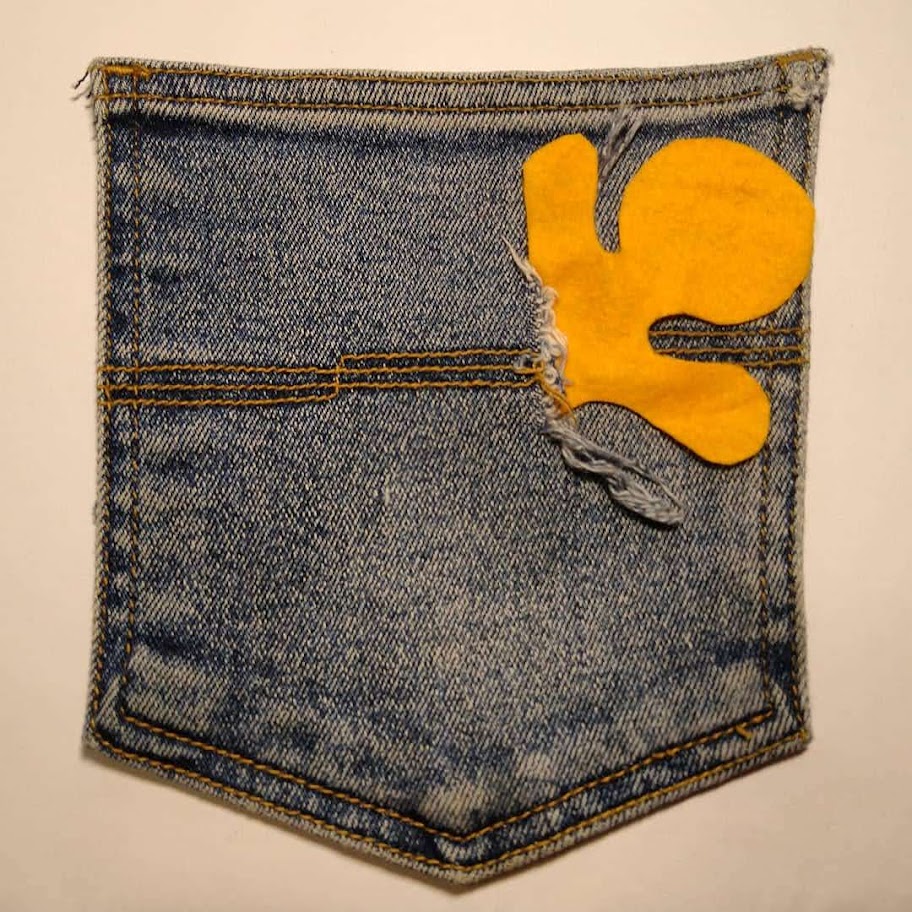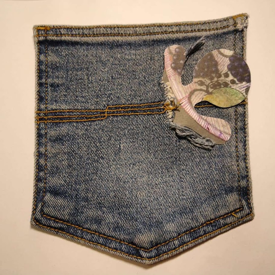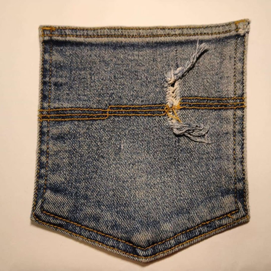 Taskut on leikattu irti farkuista niin, että niissä on myös taustakangas eli ovat pusseja. Lisäksi taustakangas on leikattu taskunsuuta noin 1 cm pidemmäksi ja se on ommellessa taitettu saumanvaraksi.