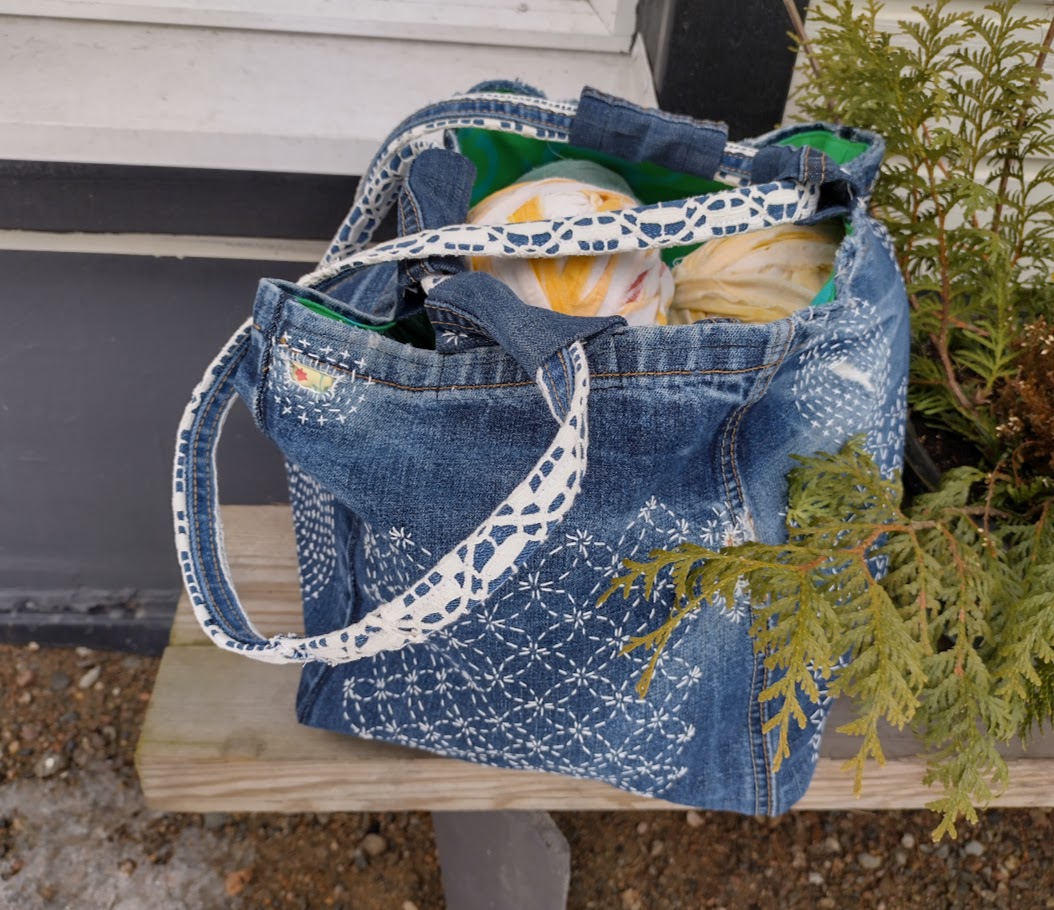 Sashiko-kirjomisessa ja Boro-paikkauksessa on vaikea päättää, koska pinta on ihan valmiina, sillä aina voi lisätä jotain yksiyiskohtia. Minunkin kassinkyljet täydentyivät moneen kertaan ns. valmistumisen jälkeen.