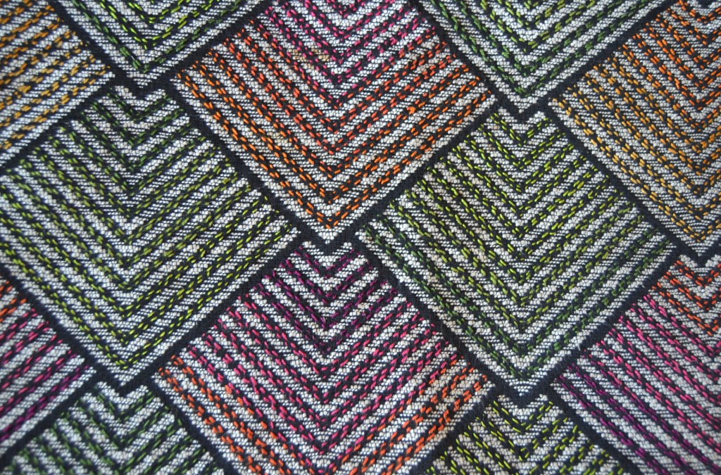 Kuviot, joissa on suoria pysty- ja vaakasuorialinjoja sekä 45 asteen linjoja ja joissa linjojen kohdatessa risteyskohtaan jää aina tyhjä tila. Näillä kuvioilla on hyvä aloittaa Sashikoon perehtyminen. Aloitimme yhden kurssilaisryhmän kanssa puhumaan henkisestä tilasta ja sen on jäänyt kuvaamaan tuota tyhjää kohtaa, jossa siis pistot eivät osu toisiinsa eivätkä siten myös risteä keskenään. Näissä kuvioissa pisto on aina oikealla puolella vähän pidempi kuin nurjalla. Kuviot ovat varsin helppoja myös aloittelijalle, mutta henkisen tilan jättäminen oikeisiin kohtiin osin ennakoiden haastaa keskittymään.